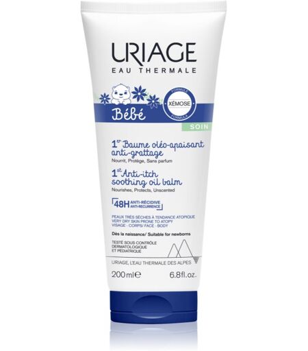 Uriage Bébé 1st Anti-Itch Soothing Oil Balm, 200 ml, Kropspleje til børn til børn, Præparatet Uriage Bébé plejer effektivt den fine børnehud. Egenskaber: lindrer irritation nærer børnehud genopretter tør hud til brug på kroppen og i ansigtet Brugsvejledning: Påføres dagligt på den rene børnehud. ...