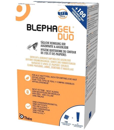 Blephagel Duo Gel Eyelids and Eyelashes Hygiene (Gel 30 G + 100 Compresses) ...