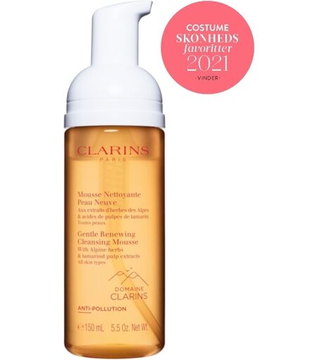 Clarins Gentle Renewing Cleansing Mousse er en virkelig lækker og let rensemousse, som er velegnet til alle hudtyper. Moussen er rig på planteekstrakter, som renser huden samtidig med at have en let eksfolierende effekt. Den er beriget med blandt andet økologiske urter fra Alperne, samt naturligt skummende sæbeurtekstrakt, som giver en skånsom rens af huden. Clarins Gentle Renewing Cleansing Mousse opløser døde hudceller på en skånsom måde, mens indholdet af Moringa ekstrakt fjerner partikler fra forurening på hudens overflade. Ved brug af denne lækre skum, vil du opleve at din hud får en strålende flot glød. Fordele: Renseskum Virker let eksfolierende Opløser døde hudceller Giver en strålende hud Til alle hudtyper Anvendelse: Masseres ind på let fugtet hud Masseres ind i huden og skylles af med vand Bruges morgen og aften Ingrediensliste: AQUA/WATER/EAU. GLYCERIN. DISODIUM COCOYL GLUTAMATE. CITRIC ACID. SORBITAN CAPRYLATE. SODIUM LAURYL GLUCOSE CARBOXYLATE. PHENOXYISOPROPANOL. TARTARIC ACID. SODIUM CITRATE. SODIUM COCOAMPHOACETATE. CAPRYLYL/CAPRYL GLUCOSIDE. LAURYL GLUCOSIDE. SODIUM COCOYL GLUTAMATE. PARFUM/FRAGRANCE. XANTHAN GUM. XYLITYLGLUCOSIDE. PROPANEDIOL. ANHYDROXYLITOL. TAMARINDUS INDICA EXTRACT. DISODIUM EDTA. XYLITOL. SODIUM CHLORIDE. SODIUM PHYTATE. SODIUM GLYCOLATE. GLUCOSE. SORBIC ACID. MELISSA OFFICINALIS LEAF EXTRACT. SAPONARIA OFFICINALIS LEAF EXTRACT. GENTIANA LUTEA EXTRACT. SODIUM BENZOATE. POTASSIUM SORBATE. MALTODEXTRIN. MORINGA OLEIFERA SEED EXTRACT. [C3795A1] ...