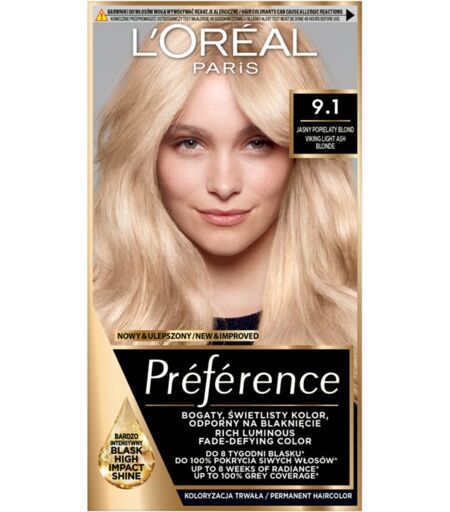 L’Oréal Paris Préférence Hårfarve Skygge 9.1 Viking Light Ash Blonde 1 stk.