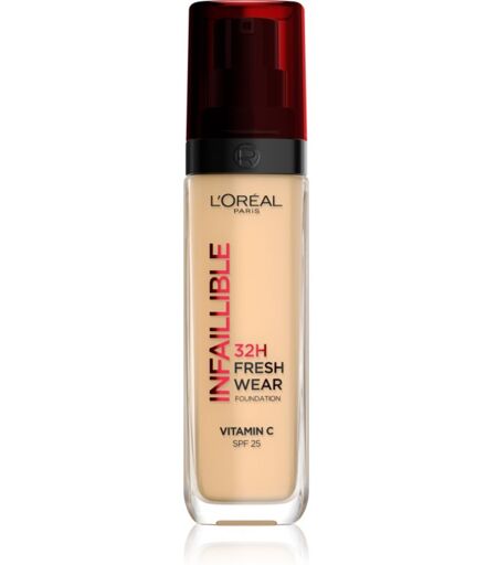 L’Oréal Paris Infaillible 32H Fresh Wear, 30 ml, Foundations til kvinder , Grundlaget for enhver makeup er en fejlfri hud, hvad enten det er en markant aftenmakeup eller en meget naturlig makeup til om dagen. Og det vil foundationen L’Oréal Paris Infaillible 32H Fresh Wear hjælpe dig med at få. Den smelter perfekt sammen med din hud og sørger for at gøre dens farvetone helt ensartet. Takket være sin dækkeevne camouflerer den straks små skønhedsfejl i huden såsom pigmentpletter, rødme eller mærker efter akne. Med dens hjælp kan du på bare et øjeblik opnå et farvemæssigt ensartet look, der fungerer fantastisk som et underlag for efterfølgende makeup. Egenskaber: holdbart resultat forener hudens farvetone efterlader huden elastisk og fin nem at påføre Brugsvejledning: Påfør makeuppen på alle vigtige punkter i ansigtet, panden, kinderne og hagen. ...
