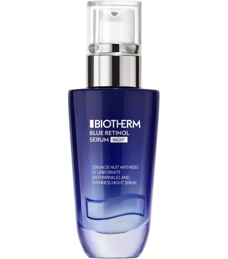 Biotherm Blue Retinol Serum Night er et yderst effektivt serum, som er spækket med anti-aging egenskaber, der virker udglattende og fornyende. Dette serum arbejder nemlig på at korrigere panderynker, kragetæer, rynker under øjnene og rynker omkring læberne, som resulterer i en mere glat og forfinet hudstruktur. Denne avancerede formel indeholder retinol (vitamin-A), som er en kraftfuld anti-age ingrediens, der gør huden mere ensartet, reducerer rynker, og forbedrer hudens udstråling. Formlen består samtidig af Biotherms signaturingrediens, Life Plankton, der er kendt for sine effektive og regenererende egenskaber. Desuden er der tilsat niacinamid, som virker lindrende og beroligende. Biotherm Blue Retinol Serum Night har en utrolig lækker konsistens, som trænger hurtigt ind i huden, og efterlader den behagelig, blød og næret med en opfriskende duft. Biotherm Blue Retinol Serum Night sammen med en af nedenstående produkter, for helt fantastiske resultater: Pro-Retinol Multi-Correct Cream - for en forbedret hudstruktur, med færre rynker og fine linjer Cera Repair Barrier Cream - for en styrket hudbarriere, med en sund udstråling Blue Therapy Uplift - for en opstrammet hud, med øget elasticitet og fasthed Genvind hudens smidighed og ungdommelige udstråling, med dette vidunderlige hudplejeprodukt fra Biotherm! Fordele: Serum Velegnet til normal, kombineret og fedtet hud Anbefales fra 25 år og op Anti-age Mindsker og korrigerer rynker Regenererende Med Biotherms signaturingrediens, Life Plankton Ensartet hudstruktur Udglattende, fornyende og blødgørende Trænger hurtigt ind i huden Med en opfriskende duft Lindrer og beroliger 92% bionedbrydelig Miljøbevist emballage med 25% genanvendt glas Æske fremstillet af FSC-certificeret pap Vegansk Anvendelse: Anvendes hver aften Påføres afrenset hud Tryk 1 pump ud på fingeren Varm produktet op mellem fingrene Fordeles over hele ansigtet Påfør produktet under øjnene som det sidste Sørg for IKKE at påføre produktet direkte på øjenlåget Afslut med en ansigtscreme, f.eks. Pro-Retinol Multi-Correct Cream, Cera Repair Barrier Cream eller Blue Therapy Uplift OBS: Er du ikke vant til at anvende retinol, anbefales det, at du starter med at anvende produktet 2 gange ugentligt, hvor det herefter kan øges. Ved brug af dette produkt bør der anvendes solbeskyttelse i dagtimerne. Ingrediensliste: 863698 39: AQUA / WATER, GLYCERIN, ISONONYL ISONONANOATE, ALCOHOL DENAT., PENTYLENE GLYCOL, DICAPRYLYL ETHER, GLYCINE SOJA OIL / SOYBEAN OIL, NIACINAMIDE, PROPYLENE GLYCOL, PEG-6 CAPRYLIC/CAPRIC GLYCERIDES, ALARIA ESCULENTA EXTRACT, MACROCYSTIS PYRIFERA EXTRACT / KELP EXTRACT, DICAPRYLYL CARBONATE, GLYCERYL ISOSTEARATE, PPG-6-DECYLTETRADECETH-30, SODIUM HYALURONATE, SODIUM HYDROXIDE, RETINOL, ADENOSINE, AMMONIUM POLYACRYLOYLDIMETHYL TAURATE, CAPRYLIC/CAPRIC TRIGLYCERIDE, CAPRYLYL GLYCOL, VITREOSCILLA FERMENT, TRISODIUM ETHYLENEDIAMINE DISUCCINATE, XANTHAN GUM, BUTYLENE GLYCOL, TOCOPHEROL, PENTAERYTHRITYL TETRA-DI-T-BUTYL... ...
