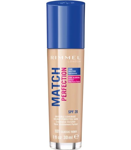 Rimmel Match Perfection Flydende foundation SPF 20 Skygge 101 Classic Ivory 30 ml