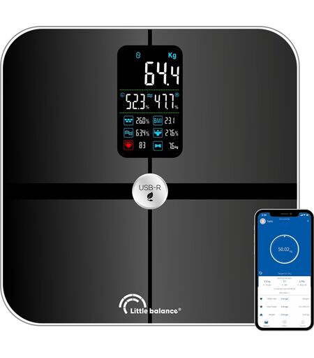 Albaline badevægt med app FITDAYS Albaline badevægten med kropsvægtsanalyse er en moderne og præcis vægt, der giver dig mere end blot din vægtmåling. Denne smarte badevægt analyserer og sporer forskellige kropsdata som kropsfedt, muskelmasse, vandprocent og BMI, hvilket giver dig et omfattende billede af din sundhed. Udstyret med en letlæselig skærm og en stilfuld, slank design passer den perfekt ind i ethvert badeværelse. Albaline badevægten er ideel for dem, der ønsker at holde styr på deres sundhed og velvære med præcise målinger og nem daglig overvågning. Specifikationer: Kropsanalysevægt måler vægt og kropsfedtprocent, kropsvandprocent, muskelmasse, knoglemasse, BMI (Bod Mass Index),BMR (Basalstofskifte), pulsen og viser Body age. Tilslut til din smartphone, og hold øje med dine fremskridt med den letanvendelige FITDAYS app På FITDAYS app vises i alt 14 informationer omkring kroppenBatteri fri – opladbar badevægt Vægten har en stor LED skærm der viser:Vægten, vægten fordelt på højre/venstre side, fedtprocent, BMI, væskeprocent, muskelmasse, puls og væske i kg. 4 elektroder er i berøring med huden, for at sikre den største målesikkerhed Stort baggrunds belyst display Memory op til 10 brugere Børne og atlet mode Træd op og aflæs øjeblikkelig vægt Max 180 kg Batteri inkluderet ...