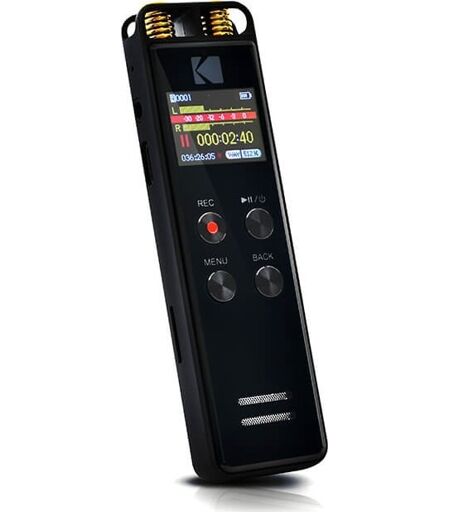 KODAK VRC 550 DiktafonDet kompakte metaldesign og den stereo omnidirektionelle mikrofon på KODAK VRC550 digital diktafon gør den til din all-round bedste mulighed for øjeblikkelig optagelse af højkvalitetslyd i WAV/MP3-formater.Dens lithium-batteri og micro-SD-kortplads gør den lige velegnet til at optage korte ideer som flere timers interview, og den kan tilpasses enhver brug takket være dens håndfri optagelse og støjreduktionsfunktioner. Dens fordele omfatter højttalerne og Plug & Play-teknologien, der gør det nemt for dig at lytte til og drage fuld fordel af dine gemte optagelser.Det indbyggede lithiumbatteri og micro SD-kortport (op til 32GB) giver VRC550 en batterilevetid på 20 timer og en optagekapacitet på op til 725 timer! Uanset om det er for at holde styr på dine ideer eller for at undgå kedelige noter, har den meget nyttige funktioner såsom stemmeaktiveret optagelse for at blive ved med at lytte under alle slags omstændigheder samt reduktion af uønsket omgivende støj for optimeret lydoptagelse.Plug & Play-teknologien giver dig mulighed for ikke blot at overføre dine optagelser til enhver computer, men også at downloade musik, så du kan bruge den som MP3-afspiller! Endelig har den også en 1,4 tommer skærm med farvedisplay, en højttaler og et 3,5 mm ministik til stereoindgang, så du har bekvemmeligheden ved at lytte til dine optagelser, med eller uden de medfølgende høretelefoner.Plug & Play teknologi20 timers driftstid8 GB intern hukommelsePort til microSD-kortOgså en MP3-afspiller ...