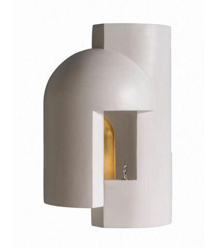 DCW Editions SOUL Story 1 Væglampe H: 28,7 cm - White/Gold SOUL fra DCW er en kollektion bestående af 6 forskellige væglamper, som har et elegant og unikt udseende. SOUL står for Souvenir of United Lebanon og er designet af den fransk-libanesiske designer Charles Kalpakian. Frédérik Winkler fra DCWéditions mødte designeren og begge mænd var engageret af kammeratskab og valgfri tilhørsforhold. De havde et ønske om at arbejde sammen og lære hinanden at kende. SOUL lampen er fremstillet af gips. Hver SOUL lampe inviterer til kontemplation gennem blikket fra en lille metalkarakter, som enten sidder, eller står i lampen. Lampen har en integreret LED lyskilde. SOUL lampen kan bruges for sig, eller kombineres med flere af samme serie. SOUL fås også som udendørs lampe. Designer: Charles Kalpakian Materialer: Gips Mål: Højde: 28,7 cm Bredde: 16,5 cm Dybde: 18,7 cm Farve: Hvid/guld Certificeringer: CE IP20 Class II Tekniske specifikationer: Kun til indendørs brug Integreret LED lyskilde Spænding: 220-240V Integreret LED lyskilde: LED, 2700k, 250lm, 3,7W, TRIAC dæmpbar ...