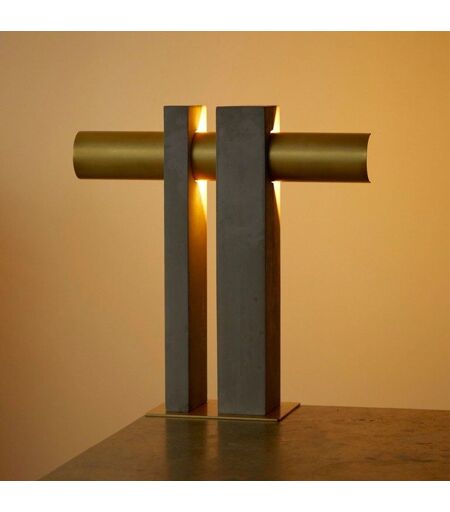 DCW Editions PI Bordlampe H: 45,3 cm - Guld PI bordlampens design er på grænsen mellem en skulptur og en arkitektonisk bygning. Lyset bliver kastet bagud, så PU monteres ved siden af en væg, som den så vil oplyse med et behageligt lys. Clément Cauvet er en unik designer, der selv beskriver Cauvet kollektionen som en bro mellem fortid og fremtid. Lampen har en 200 cm lang ledning med tænd/sluk kontakt og LED lyskilde integreret. Designer: Clément Cauvet Materialer: Beton Stål Mål: Højde: 45,3 cm Bredde: 44,3 cm Dybde: 15,5 cm Ledningslængde: 200 cm Farve: Guld Ledningsfarve: sort Certificeringer: CE IP20 Class II Tekniske specifikationer: Kun til indendørs brug Lyskilde: LED Lyskilde integreret Max Watt: 13,5W Spænding: 230V Lysstrøm: 1350 lm Afbryders placering: på ledningen Integreret lyskilde: LED, 2700k, 1350lm, dæmpbar ...