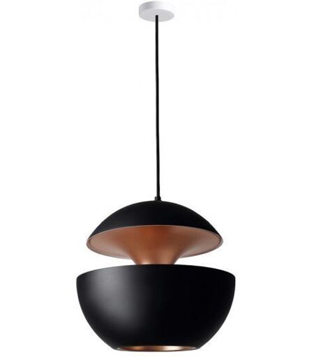 DCW Editions Here Comes The Sun Ø: 45cm - Sort/Kobber Den smukke Here Comes The Sun pendel er designet af arkitekten Bertrand Balas i 1970, hvor han lod sig inspirere af solopgangen. Han brugte mange aftener på at se solnedgangen over Garonne-floden, og med det var Here Comes The Sun pendlen født. Når pendlen er slukket, ligner den alle andre lamper, som kaldes for en original, men når lyset tændes i pendlen, bliver den næsten helt magisk. Det mørke forsvinder, og forvandler sig til noget beroligende. Du kan bruge lampen for sig, men den kan med fordel også kombineres med forskellige størrelser og/eller farver i en klynge. Pendlen har en ledningslængde på 300 cm, lyskilde medfølger ikke. Designer: Bertrand Balas, 1970 Materialer: Aluminium Koaksialkabel Mål: Diameter, Ø: 45 cm Baldakin, diameter: 9 cm Ledningslængde: 300 cm Vægt: 5 kg Farve: Udvendig: sort Indvendig: kobber Ledningsfarve: sort Certificeringer: CE IP20 Class II Tekniske specifikationer: Kun til indendørs brug Fatning: E27 LED - pære er ikke inkluderet Max Watt: 23W Spænding: 220/240V ...