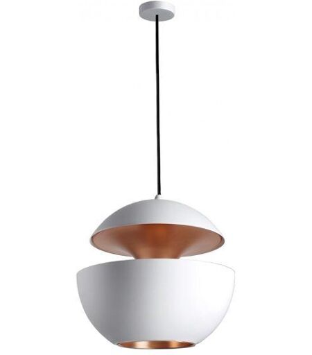 DCW Editions Here Comes The Sun Ø: 45cm - Hvid/Kobber Den smukke Here Comes The Sun pendel er designet af arkitekten Bertrand Balas i 1970, hvor han lod sig inspirere af solopgangen. Han brugte mange aftener på at se solnedgangen over Garonne-floden, og med det var Here Comes The Sun pendlen født. Når pendlen er slukket, ligner den alle andre lamper, som kaldes for en original, men når lyset tændes i pendlen, bliver den næsten helt magisk. Det mørke forsvinder, og forvandler sig til noget beroligende. Du kan bruge lampen for sig, men den kan med fordel også kombineres med forskellige størrelser og/eller farver i en klynge. Pendlen har en ledningslængde på 300 cm, lyskilde medfølger ikke. Designer: Bertrand Balas, 1970 Materialer: Aluminium Koaksialkabel Mål: Diameter, Ø: 45 cm Baldakin, diameter: 9 cm Ledningslængde: 300 cm Vægt: 5 kg Farve: Udvendig: hvid Indvendig: kobber Ledningsfarve: sort Certificeringer: CE IP20 Class II Tekniske specifikationer: Kun til indendørs brug Fatning: E27 LED - pære er ikke inkluderet Max Watt: 23W Spænding: 220/240V ...