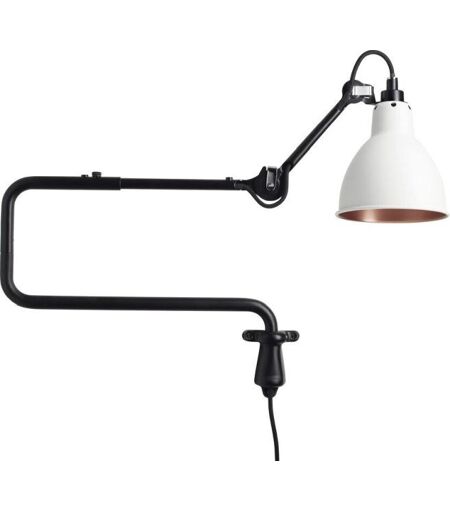 DCW Editions Lampe Gras N303 Væglampe Rund L: 92cm - Sort/Hvid/Kobber Lampe Gras N303 er en unik lampe med et elegant, industrielt design. Væglampen er lavet i stål og er utrolig anvendelig og fleksibel. Væglampen kan justeres lige efter dit behov; drej lampen fra side til side, juster armens længde, tilt lampeskærmen - se den tekniske tegning for en oversigt over indstillingsmulighederne. Det industrielle design er flot uden at blive for klodset, de enkelte, rene linjer er en fryd for øjet. Placer lampen der hvor du har brug for lidt ekstra lys. Hæng den ved sengen, på kanten af et bord, eller i læsehjørnet. Lampens arm kan justeres fra 34 cm til 70 cm i længden. N303 har en E14 fatning, pære medfølger ikke. Designer: Bernard-Albin Gras Materialer: Stål Tekstilledning Mål: Længde, arm: 55 - 92 cm Lampeskærm, højde: 14 cm Lampeskærm, ø: 14 cm Base, ø: 9,5 cm Ledningslængde: 230 cm Vægt: 1,8 kg Farve: Stel: sort Lampeskærm: udvendig hvid, indvendig kobber Ledningsfarve: sort Certificeringer: CE IP20 Class I Tekniske specifikationer: Til indendørs brug Fatning: E14 LED - pære medfølger ikke Max Watt: 15W Spænding: 220/240V Rund lampeskærm Lyskilde: E14 LED, 4W, 320 lumen, 2700 kelvin ...