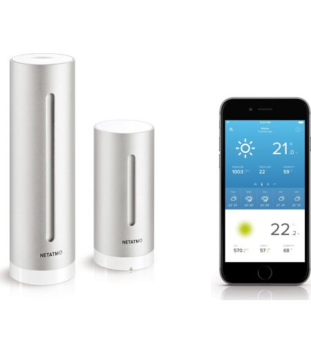 Mere end bare en almindelig vejrstation Uanset om du bor i byen eller på landet, er Netatmo den perfekte måde at holde sig opdateret på vejr og klima. Du får oplysninger om, hvordan klimaet er lige nu, eller hvordan det har været i en periode. Det vises i tydelige diagrammer, og systemet kan nemt udvides, hvis du f.eks. vil måle i flere rum. Nøglefunktioner: Lækkert aluminiumsdesign med unik app til iOS og Android To sensorer, der måler indendørs og udendørs klima Viser temperatur, luftkvalitet, luftfugtighed og meget mere De fleste kan jo godt lide at tale om vejret, og Netatmo er en ny og helt unik komfortmonitor, som holder styr på dit lokale vejr, luftkvalitet og lydniveauet inden for samt temperatur både inde og ude. Installationen: Placér den ene sensor inden for og den anden uden for, installér den pæne og overskuelige app, og så lader Netatmo dig holde styr på klimaet i din iPhone, iPad, Android-enhed eller computer. Indeholder: 1 stk. modul til indendørs brug 1 stk. modul til udendørs brug 1 stk. USB-strømadapter 1 stk. USB-kabel 4 stk. AAA-batterier til udendørsmodulet (holder i op til 1 år) ...