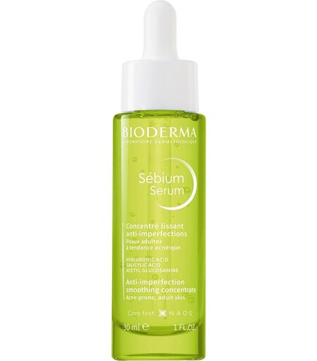 Bioderma Sébium Serum er et multifunktionelt serum, der er velegnet til en voksen hud med tendens til urenheder. Serummet har en hurtig effekt på bumser, synlige og forstørrede porer samt tilbageværende mærker, og det forebygger, at nye opstår. Kombinationen af salicylsyre og acetylglucosamin arbejder i perfekt harmoni: Salicylsyren eksfolierer nænsomt, mens acetylglucosamin booster hudens cellefornyelse, hvilket giver dig en friskere og glattere hud. Den lette, hurtigtabsorberende konsistens efterlader huden gennemfugtet med langvarige resultater. Dag for dag vil din hud fremstå klarere, glattere og mere ensartet, samtidig med at fine linjer reduceres. Bioderma Sébium Serum indeholder også FLUIDACTIV™-teknologi, der biologisk normaliserer talgkvaliteten for at forebygge, at der opstår nye bumser og urenheder. Høj tolerance. Testet under dermatologisk kontrol. Ingen fedtet eller klæbrig finish. Produktets effektivitet inden for 7 dage: (Klinisk test under dermatologisk kontrol. 33 personer over 4 uger. % refererer til tilfredshed). Bumser/urenheder reduceres: 88% Poresammentrækkende effekt: 91% Mærker/pletter reduceres synligt: 76% Fine linjer reduceres: 82% Fordele: Serum Reducerer bumser, urenheder og mærker efter disse Eksfolierer og fremmer cellefornyelsen Fungerer perfekt som base for makeup Velegnet til kombineret/fedtet hud Anvendelse: Anvendes på afrenset hud Påføres i ansigtet og på halsen Efterfølg med dag- eller natcreme Bruges morgen og aften Kombinér gerne med andre produkter fra Sébium-serien, for at opnå optimal effekt Ingrediensliste: AQUA/WATER/EAU, BUTYLENE GLYCOL,GLYCERIN, PROPANEDIOL, ACETYL GLUCOSAMINE,PENTYLENE GLYCOL, SALICYLIC ACID, XANTHAN GUM,POLYSORBATE 20, SODIUM CITRATE, MANNITOL, SODIUMHYDROXIDE, PROPYL GALLATE, HYDROLYZED HYALURONICACID, SODIUM METABISULFITE, AMINOETHANESULFINICACID, FRAGRANCE (PARFUM). [BI 2068] ...