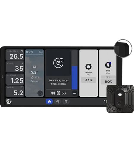 Shelly Wall Display X2 er et kontrolpanel til det smarte hjem med et 6,95-tommer farvedisplay og koblingsfunktioner til belastningskredsløb. Enheden har en indbygget web interface til at overvåge, kontrollere og justere dens indstillinger. Du kan åbne webgrænsefladen ved at indtaste enhedens IP-adresse i din browser, hvis den tilgås via det samme netværk, som enheden er tilsluttet. Enheden kan få adgang til og interagere med andre smarte enheder eller automatiseringssystemer, hvis de er på den samme netværksinfrastruktur. For præcis klimakontrol leveres enheden sammen med Shelly BLU H&T-sensoren – så du får nøjagtige temperatur- og fugtighedsværdier for optimal termostatfunktion. ...
