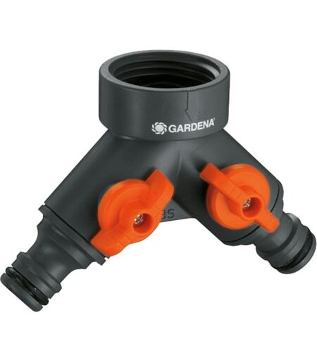 2-vejsventilen (938-20) bruges til at betjene to forbindelsesanordninger. På den måde skal de to slanger aldrig skiftes ved vandhanen. De to udgange kan justeres uendeligt uafhængigt af hinanden. GARDENA 2-vejs ventilen er velegnet til armaturer med 26,5 mm (G 3/4") gevind. ...