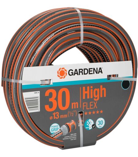 Slange med Power Grip, 30 m GARDENA Comfort HighFLEX Slange med Power Grip-profil garanterer den perfekte kobling mellem slange og slangekobling. Disse låses sammen ligesom tandhjul, takket være ny teknologi. Slangen er trykfast og beholder sin form, men er samtidig mere fleksibel i anvendelse end Comfort FLEX Slangen. Det skyldes den øgede tæthed i spiralerne, som gør slangen mere fleksibel og nemmere at håndtere. Disse er de bedste forudsætninger for praktisk og fleksibel brug i din have. Den kan systematisk suppleres med Original GARDENA System-fittings og tilkoblingsenheder, hvis det kræves. Den indeholder ingen skadelige (ftalater) og tungmetaller, og den er naturligvis UV-resistent. De tykke vægge gør den meget robust og holdbar. ...