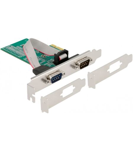 Dette PCI Express x1-kort fra Delock tilføjer to eksterne RS-232-porte til pc''en. Alt du behøver er en gratis PCIe x1-slot og en PCIe x1-slot. Takket være de medfølgende lavprofilpaneler kan kortet også bruges i pc-systemer med en lille formfaktor. ...