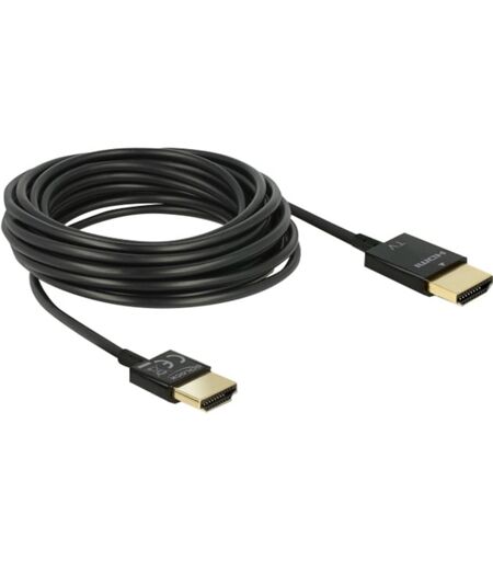 High Quality High Speed HDMI med Ethernet-kabel 84774 fra Delock er kendetegnet ved sin lille diameter og korte stik. Det tredobbelte skærmede kabel kombinerer hurtig dataoverførsel samt audio/video- og Ethernet-forbindelse i ét. Ved at understøtte en maksimal båndbredde på 18 Gb/s kan indhold afspilles i 4K-opløsning (maksimal billedhastighed 60 Hz), 3D-indhold i 4K-opløsning (maksimal billedhastighed 30 Hz) og indhold i 21:9 biografformat. Kablet gør det også muligt at transmittere to videokanaler samtidigt for at vise videostreams for to brugere på en skærm, samt samtidig transmission af op til fire lydkanaler. Kvaliteten af lydtransmissioner forbedres betydeligt af samplingshastigheden på op til 1.536 kHz. ...