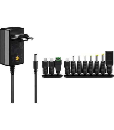 Den alsidige universelle strømforsyning 64570 fra goobay med de innovative USB-tilbehør og DC-udskiftelige adaptere er den praktiske strømforsyning til alle små apparater i ét. Med adapterne og det avancerede USB-C-tilbehør har du altid den rigtige forbindelse til dine elektroniske enheder lige ved hånden - fra radioen til routeren. Sikringer i plug-in-strømforsyningen beskytter mod kortslutning, overbelastning, overspænding og overstrøm ...