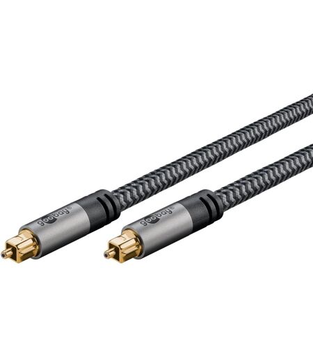 Dette Toslink-kabel fra goobays Plus-serie er en brugervenlig løsning af høj kvalitet til tilslutning af tv''er, spillekonsoller eller Blu-ray-afspillere til hi-fi-enheder såsom soundbars, forstærkere eller stereoanlæg. Som et fiberoptisk baseret optisk lydkabel er kablet immunt over for elektrisk interferens. På denne måde bygger den også bro over store afstande uden forstyrrelser. Den er ekstremt fleksibel og designet med knækbeskyttelse, den flettede tekstilkappe sikrer en behagelig følelse. De forgyldte stik forhindrer korrosion og er særligt holdbare. ...