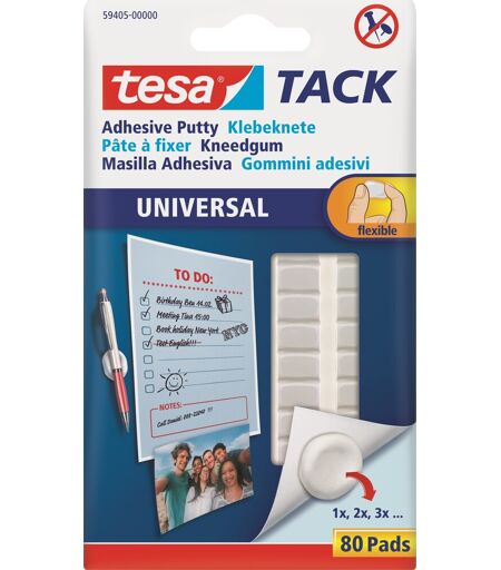 tesa Tack Klæbegummi, 80 stk. Hvad end det er tegninger, firmapræsentationer, postkort, julekort, fotos eller visitkort, der skal hænges op på væggen, computeren eller køleskabet, så er tesa TACK et helt perfekt valg. Denne variant af tesa TACK er særligt udviklet til fastgørelse af halvtunge genstande, såsom tegninger, kalenderblade og dokumenter. De hvide klæbepuder kan genanvendes og flyttes rundt på flere gange. De bør bruges på jævne og faste overflader. Klæbemassen kan som hovedregel fjernes igen uden spor, men klæbepuderne kan efterlade fedtpletter på absorberende overflader. tesa TACK klæbemassen har en blød konsistens ligesom modellervoks, som er nem at dosere. Klæbepuderne er nemme og praktiske at bruge. Klæbemassen kan anvendes enkeltvis i den udskårne størrelse, eller du kan slå flere puder sammen, hvis du har behov for at sætte større objekter fast. Farve: Hvid 80 stk. pr pk. Mål: 1,0 x 0,8 cm tesa nr. 59405 ...