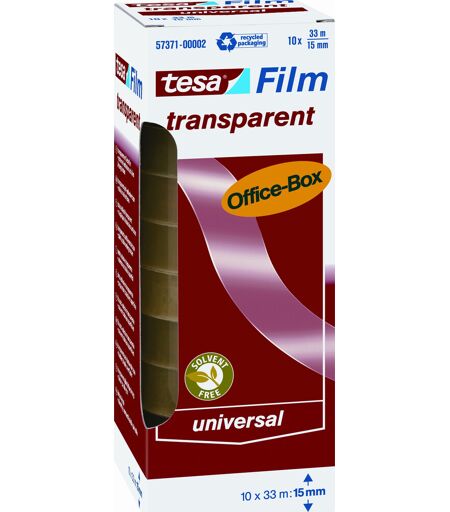 tesa kontortape er velegnet til de fleste daglige formål Allround PP-kontortape, når det skal være lidt mere lækkert end standarden. Transparent, selvklæbende kontortape i den gode og holdbare kvalitet fra tesa. Særdeles brudstærk med en støjsvag afrulning - perfekt og nærmest uundværlig til en lang række opgaver i hjemmet og på kontoret. Tapen er aldersbestandig og har en stærk klæbeevne og opløsningsmiddelfri klæbemasse. Passer i alle tesafilm® hånddispensere. Transparent Mål: 15 mm x 33 m Der er 10 ruller i en æske PP-folie med opløsningsmiddelfri klæbemasse tesa nr. 57371 ...