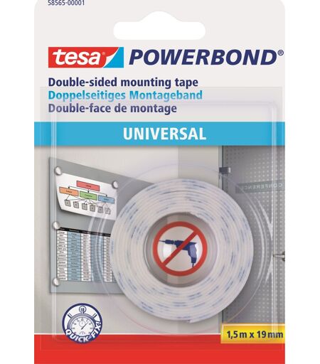 tesa Powerbond Universal dobbeltsidet monteringstape Stærk, dobbeltklæbende monteringstape som giver sikker og hurtig fastgørelse og ophængning af lette genstande på kontoret og i hjemmet. tesa Powerbond Universal er især genialt hvis du vil hænge noget på væggen, og gerne vil undgå at bore huller i væggene. Tapen giver dig en professionel finish uden brug af grimme skruer og søm. Den dobbeltklæbende tape er velegnet til indendørs brug på tørre, rene overflader. Du kan selv bestemme størrelsen på tapen, ved nemt og hurtigt at klippe den til den rette størrelse. Tapen kan klæbes på de fleste genstande. Du trækker bare tapens bagsidebelægning af, og så er den dobbeltsidede tape klar til at blive monteret på væggen. Farve: Hvid Til lette og flade genstande Ideel til indendørs brug Nem at anvende Permanent lim Professionel finish uden brug af bor, skruer og søm Mål: 19 mm x 1,5 m tesa nr. 58565 ...