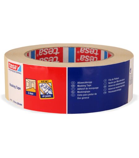 Malertape/afdækningstape i høj kvalitet fra tesa Universal afdækningstape til enkle afdækningsopgaver. Desuden god til fastgørelse, bundtning og markering. Tapen har let kreppet papir og kan fjernes uden at efterlade klæberester i op til 3 dage. Bredde: 38 mm Længde: 50 m tesa nr. 04323 ...