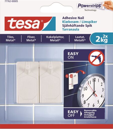 Smart klistersøm til genstande på glatte og faste overflader Lad være med at bruge tid og kræfter på at bore huller i væggen eller at skulle stå og bøvle med søm og hammer. Med klæbesømmet fra tesa® sikrer du let, bekvem og pålidelig montering, der er perfekt til ophængning af pyntegenstande, køkkenredskaber mm. Et smart alternativ til skruer eller søm, der er særlig velegnet til at blive fastgjort på glatte overflader som fliser, glas og metal. Hver af de selvklæbende søm har en bærekraft på op til 2 kg, hvilket skyldes den effektive klæbestrips, som er med til at sikre at sømmene er godt fastgjort, så du kan være helt sikker på at de genstande, som du hænger op, ikke falder ned. Gøres der tilmed brug af to søm, øges bærevnen til 4 kg, hvilket gør det muligt for dig at hænge både tungere eller større genstande op. Monteringen af klæbesømmene er utrolig let idet det blot tager et øjeblik at fastgøre sømmene uden at der skal gøres brug af forskelligt værktøj eller at der forårsages skade på overfladen. Og takket været tesas® Powerstrips®-teknologien kan sømmene nemlig fjernes nemt og hurtigt uden at der efterlades klæberester på underlaget. Derudover er det også muligt at genbruge klæbesømmene med blot en ny klæbestrip. Produkttype: Klæbesøm Overflade: Fliser og metal Indhold: 2 søm og 3 strips Farve: Hvid Striptybe: Indendørs Bæreevne: Op til 2 kg pr. søm Skadefri ophæng – klæber godt, fjernes uden klæberester tesa nr. 77762 ...