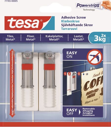 Tesa Justerbar Klæbeskrue, Fliser/metal, <3 Kg