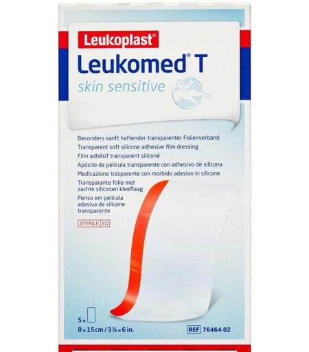 Leukomed T skin sensitive (8 x 15 cm) er en steril, vandtæt og transparent filmbandage med silikoneklæb til følsom og sårbar hud. ...