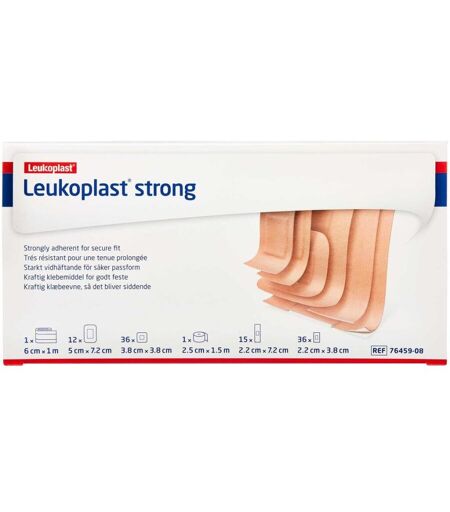 Leukoplast Strong Strips er non-sterile plastre i beige farve med en høj hæfteevne. Anvendes til snitsår og overfladiske hudafskrabninger. Bemærkning Kun til engangsbrug. ...
