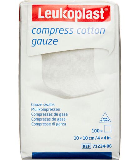 Leukoplast Compress Cotton Gauze 10 x 10 cm 12 lags Medicinsk udstyr 100 stk
