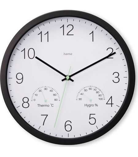 Hama vægur "Santorini" Diameter 30 Cm, Sort Santorini-væguret tilbyder en stille og effektiv tidtagningsløsning med sit lydløse urværk og sweep-sekundviser, der sikrer et roligt miljø. Uret har også et indbygget hygrometer, som viser luftfugtigheden indendørs, hvilket giver ekstra funktionalitet til dit hjem. Emballagen er 100 % plastfri, hvilket reducerer plastaffald og forbedrer genanvendeligheden. Derudover er det papir og pap, der bruges i emballagen, FSC-certificeret og stammer fra bæredygtig skovforvaltning, hvilket afspejler en ansvarlig tilgang til ressourceanvendelse. Specifikationer: Lydløst urværk Sweep sekundviser Indbygget hygrometer Plastfri emballage FSC-certificerede materialer ...