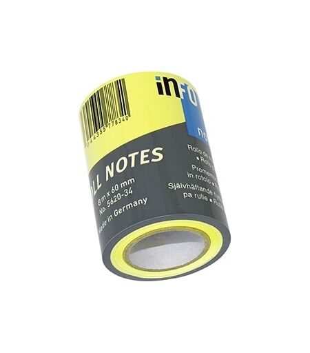 iNFO Roll NotesPratisk - og muligvis den mest fleksible note nogensinde.Uanset hvor lang eller kort din meddelelse er, kan du klare det med Roll Notes. Du skriver blot din meddelelse og river et passende stykke af. Der er klæbemiddel på hele bagsiden af noten, så den sidder godt fast på de fleste overflader.Der kan tilkøbes en blå dispenser, der let kan åbnes og genpfyldes med en ny rulle.Mål på note (BxL): 60 mm x 10 meterFarve på note: GulNoten klæber på hele overfladen ...