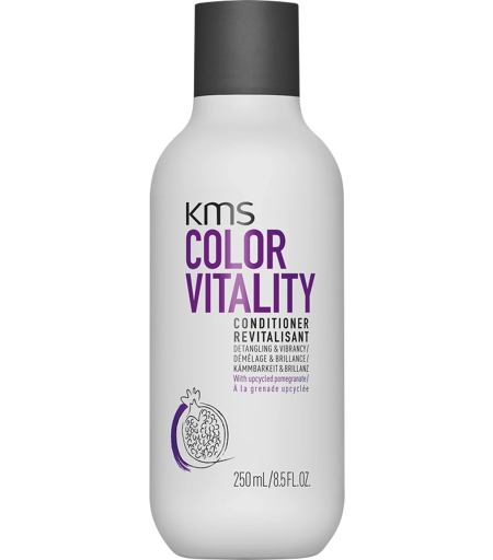 KMS ColorVitality Conditioner er en lækker conditioner til farvet hår, som beskytter mod farvefading, samt gør håret mere glansfuldt og let at rede ud. Formlen med upcyclet granatæble beskytter mod at farven falmer i forbindelse med vask eller som følge af frie radikaler forårsaget af f.eks. UV-stråler, og holder farven levende i op til 20 vaske. Den giver ligeledes håret vægtløs fugt og pleje, genopretter dets naturlige styrke og glans, samt gør det op til 4 gange lettere at rede ud*. *I kombination med ColorVitality Treatment. Fordele: Conditioner Til farvet hår Beskytter mod at farven falmer Holder farven levende i op til 20 vaske Giver vægtløs fugt og pleje Genopretter hårets naturlige styrke og glans Gør håret op til 4 x lettere at rede ud Velegnet til alle hårtyper Uden SLS, SLES, PEG, mineralske olier, silikone og syntetiske farvestoffer Vegansk Anvendelse: Påføres i nyvasket hår Lad den virke i 2 minutter Skyl grundigt ud Ingrediensliste: Water/Aqua/Eau, Cetearyl Alcohol, Cetrimonium Chloride, Isopropyl Myristate, Glycerin, Lactic Acid, Panthenol, Punica Granatum Peel Extract, Citric Acid, Sodium Benzoate, Fragrance/Parfum. ...