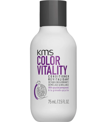 KMS ColorVitality Conditioner er en lækker conditioner til farvet hår, som beskytter mod farvefading, samt gør håret mere glansfuldt og let at rede ud. Formlen med upcyclet granatæble beskytter mod at farven falmer i forbindelse med vask eller som følge af frie radikaler forårsaget af f.eks. UV-stråler, og holder farven levende i op til 20 vaske. Den giver ligeledes håret vægtløs fugt og pleje, genopretter dets naturlige styrke og glans, samt gør det op til 4 gange lettere at rede ud*. *I kombination med ColorVitality Treatment. Fordele: Conditioner Til farvet hår Beskytter mod at farven falmer Holder farven levende i op til 20 vaske Giver vægtløs fugt og pleje Genopretter hårets naturlige styrke og glans Gør håret op til 4 x lettere at rede ud Velegnet til alle hårtyper Uden SLS, SLES, PEG, mineralske olier, silikone og syntetiske farvestoffer Vegansk Anvendelse: Påføres i nyvasket hår Lad den virke i 2 minutter Skyl grundigt ud Ingrediensliste: Water/Aqua/Eau, Cetearyl Alcohol, Cetrimonium Chloride, Isopropyl Myristate, Glycerin, Lactic Acid, Panthenol, Punica Granatum Peel Extract, Citric Acid, Sodium Benzoate, Fragrance/Parfum. ...