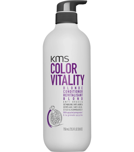 KMS ColorVitality Blonde Conditioner er en lækker conditioner, som forbedrer de kolde toner i blond, lysnet eller gråt hår. Formlen med violette pigmenter og upcyclet granatæble fremhæver de kolde toner i blondt, lysnet eller gråt hår og holder de blonde toner kølige, samt ophæver de gyldne toner mellem farvebehandlinger*. Denne conditioner sørger ligeledes for at tilføre håret fugt og pleje uden at tynge, øger dets glans og gør det op til 4 gange nemmere at rede ud. *Ved regelmæssig brug. Fordele: Conditioner Til blond, lysnet eller gråt hår Fremhæver de kolde toner Holder de blonde toner kølige Ophæver gyldne toner mellem farvebehandlinger Fugter og pleje håret uden at tynge Øger hårets glans Gør håret lettere at rede ud Velegnet til alle hårtyper Uden SLS, SLES, PEG, mineralske olier, silikone og syntetiske farvestoffer Vegansk Anvendelse: Anvendes i nyvasket hår Fordeles i hårets længder og spidser Lad den virke i 2-5 minutter Skyl grundigt ud Ingrediensliste: Water/Aqua/Eau, Cetearyl Alcohol, Cetrimonium Chloride, Glycerin, Panthenol, Hydroxypropyl Guar, Hydroxypropyltrimonium Chloride, Lactic Acid, Punica Granatum Peel Extract, Citric Acid, Sodium Benzoate, Fragrance/Parfum, Ext. Violet 2/CI 60730, Basic Yellow 57, Disperse Violet 1, HC Blue No. 12. ...