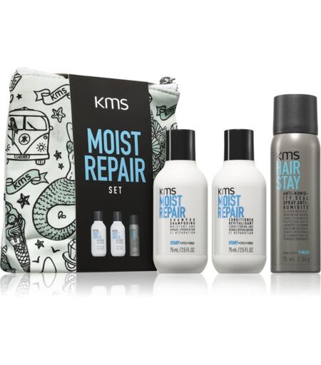 KMS Moist Repair Set, 1 stk., Anden styling til kvinder , Alt til at få dit hår til at se dejligt ud i én pakke. Kosmetiksættet KMS Moist Repair Set indeholder ikke et, men flere produkter, der hjælper dig med at skabe eller berige dine regelmæssige skønhedsrutine rettet mod hårpleje. Denne pakke, der er spækket med hårplejeprodukter, vil glæde både dig eller dine nærmeste som gave. Sættet indeholder: KMS Moist Repair Shampoo Shampoo med fugtgivende virkning 75 ml KMS Moist Repair Conditioner Fugtgivende balsam Til tørt hår 75 ml KMS Hair Stay Anti-Humidity Seal Hårspray Vandfast 75 ml Rejse kosmetiktaske til kvinder 1 stk. Egenskaber: vasker håret og renser hovedbunden regenererer og nærer håret beskytter håret mod at blive ødelagt giver et sundt skær Brugsvejledning: Brug alle produkterne i det kosmetiske sæt som angivet i vejledningen. ...