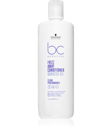 Schwarzkopf Professional BC Bonacure Frizz Away Conditioner, 1000 ml, Hårbalsam til kvinder , Når du vasker dit hår, åbner shampooen hårets overfladestruktur – dvs. skællag. Derfor er det nødvendigt at give håret en behandling efter hårvasken, der igen indkapsler det. Dette er et arbejde for conditioneren Schwarzkopf Professional BC Bonacure Frizz Away Conditioner. Ud over at den indkapsler hårstråene, sørger den for deres næring og hydrering og blødgør håret for at gøre det smukt, glansfuldt og sundt. Den beskytter håret mod mekaniske skader og udtørring, udglatter dets overflade, og hjælper med at gøre det blødere, hvilket gør det nemmere at rede håret ud og style det. Egenskaber: udglatter og virker mod krusen Brugsvejledning: Påfør i hår, der er vasket med shampoo. Lad det virke et øjeblik, og skyl derefter grundigt. ...