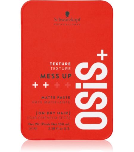 Schwarzkopf Professional Osis+ Mess Up, 100 ml, Hårpastaer til kvinder , Hårpastaen Schwarzkopf Professional Osis+ Mess Up vil hjælpe dig med at skabe en perfekt frisure, der holder hele dagen lang. Du kan bruge den til at forme dit hår som ønsket, fiksere din frisure i lang tid, og som ikke vil virke unaturlig og heller ikke give fornemmelsen af hårdt hår. Den vil give et ekstra stærkt hold, der bliver fleksibelt, så du kan forme og style din frisure i dagens løb. I modsætning til de sædvanlige stylinggeler giver den håret en ret mat finish. Hårpastaen bliver din uundværlige hjælper ved den daglige hårstyling takket være sine mange fordele og nemme brug. Egenskaber: mellem fiksering giver frisuren tekstur og form belaster ikke håret er nem at vaske ud giver håret mathedseffekt Ingredienser: veganer Brugsvejledning: Undgå kontakt med øjnene. Skyl omgående grundigt med vand ved kontakt med øjnene. ...