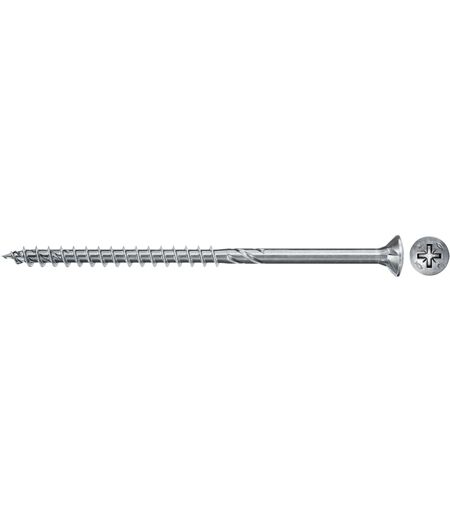 Fischer Power-Fast II FPF II CZP BC er en galvaniseret, blå passiveret skrue med delvis gevind og drev Phillips slot PZ 3. Galvanisering indeholder ikke noget indhold af krom VI og er derfor meget miljøvenlig. Skruen med forsænket hoved kan forsænkes i flugt med overfladen i træet. Power-Fast II med højtydende voksbelægning reducerer skruemomentet og tillader også at skrue tæt på kanten uden problemer. Spånpladeskruen har en signifikant reduceret gabende adfærd sammenlignet med andre kommercielt tilgængelige skruer. Den 70 mm lange deltråd gør det muligt at trække træelementer sammen. Spånpladeskruen er velegnet til fastgørelse af bærende komponenter i belagt træ, hårdttræ, blødt træ og til træforbindelser eller forbindelser af metaldele på træ, såsom metalbeslag, vinkler, bjælkesko og andre metal- og træforbindelser. ...