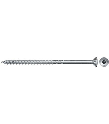 Fischer Power-Fast II FPF II CTP BC er en galvaniseret, blå passiveret skrue med delvis gevind og drev Innenstern TX 30. Galvanisering indeholder ikke noget indhold af krom VI og er derfor meget miljøvenlig. Skruen med forsænket hoved kan forsænkes i flugt med overfladen i træet. Power-Fast II med højtydende voksbelægning reducerer skruemomentet og tillader også at skrue tæt på kanten uden problemer. Spånpladeskruen har en signifikant reduceret gabende adfærd sammenlignet med andre kommercielt tilgængelige skruer. Den 70 mm lange deltråd gør det muligt at trække træelementer sammen. Spånpladeskruen er velegnet til fastgørelse af bærende komponenter i belagt træ, hårdttræ, blødt træ og til træforbindelser eller forbindelser af metaldele på træ, såsom metalbeslag, vinkler, bjælkesko og andre metal- og træforbindelser. ...