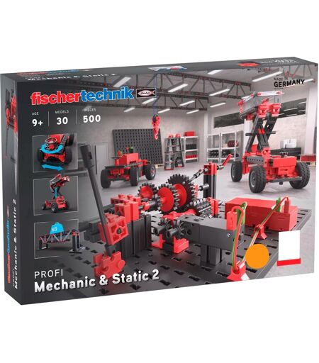 Fischertechnik-sættet Mechanic & Static 2 er et fantastisk byggesæt til spirende maskiningeniører eller ingeniører. Hvordan fungerer et akseldrev eller manuel gearkasse? Hvad er en planetgearkasse? Hvordan konstruerer man en stabil bro? Disse og andre elementære spørgsmål fra mekanik og statik besvares af dette byggesæt ved hjælp af 30 forskellige modeller. På denne måde lærer børn fra 9 år det grundlæggende i teknologi på en legende måde! ...