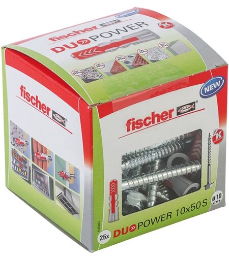 Fischer universal dowel DUOPOWER 535461 tilbyder meget gode holdeværdier gennem 2 komponenter: Afhængigt af byggematerialet aktiverer den grå komponent lavet af nylon af høj kvalitet automatisk det optimale driftsprincip (spredning, klapper, knuder) for det bedste greb. Ekspansionsvingerne på den røde komponent understøtter sikker spredning og giver ekstra sikkerhed til den grå komponent. De udtalte co-roterende enheder låser i byggematerialet og forhindrer rotation i borehullet. Den glatløbende åbning sikrer nem fastgørelse af skruen og sikker styring og fiksering i skruekanalen. Fischer DUOPOWER forhindrer skruen i at vælte og giver den bedst mulige feedback (feel-good faktor) af dyvelen. Du kan mærke, at dyvelen passer perfekt. Kanten dannet på dyvelhovedet forhindrer også dyvelen i at glide ind i borehullet. ...