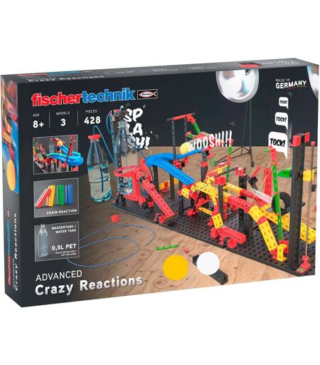 Dette byggesæt bringer en masse action ind i børnenes værelse. Der medfølger 428 komponenter, hvorfra der kan bygges tre forskellige kædereaktionsmodeller. Dette giver dig mulighed for at opdage kablets, håndtagets og gearkassens funktion på en legende måde. Selvfølgelig kan tinkerers bygge deres helt egne chicanes og også integrere andre objekter, der ikke kommer fra fischertechnik verden. Dette sæt kan kombineres med de andre separat tilgængelige kædereaktionssæt Funny Machines og Funny Reactions. ...