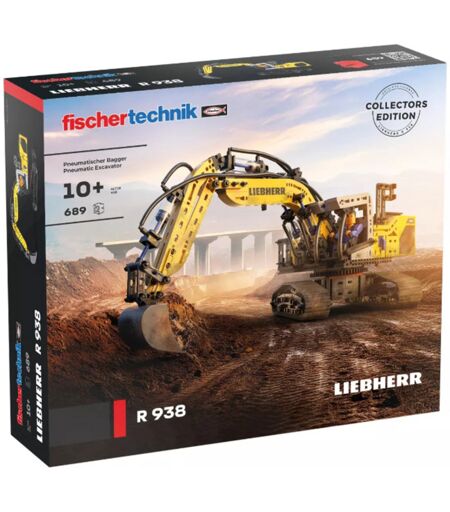 Dette sæt fra fischertechnik kombinerer detaljeret design med realistisk pneumatisk teknologi: Liebherr R 938 pneumatisk gravemaskine indeholder en elektrisk kompressor og overbeviser med præcis trykregulering og finjusterbar luftmængde. Den har også en bevægelig bom, en separat kontrollerbar skovl og realistiske bevægelser. Med dette sæt kan teknologi ikke kun konstrueres i lille skala, men også forstås. På den måde udforsker børn fra 10 år tekniske sammenhænge – på en legende og praktisk måde! ...