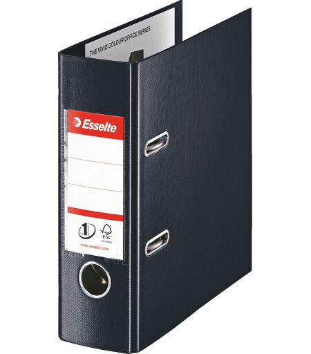 Esselte No.1 brevordner i høj kvalitet med præcis lukkemekanisme Professionel brevordner i den velkendte høje Esselte kvalitet - perfekt til hyppig brug på arbejdspladsen og i hjemmet. Brevordneren har en høj brugervenlighed takket være det gennemtænkte og patenterede design. Den robuste brevordner har en stærk metal løftearm, som sørger for nøjagtig styring og lukning af "benene". Samtidig er lukkemekanismen både ergonomisk korrekt og kraftig designet, så det er ubesværet at åbne og lukke brevordneren. Designet sørger yderligere for, at papirerne ikke hænger fast, når de flyttes fra den ene side til den anden. Farve: Sort Format: A5 Patenteret design Gennemtestet til 10.000 præcise åbninger/lukninger Robust plastik glidesko for nøjagtig styring og lukning af "benene" Forside lukning, fingerhul og metalkanter giver let håndtering Rygetiketten i karton i lommen kan udskiftes 3 års garanti på lukkemekanismen Kapacitet: 500 A5-ark Rygbredde: 75 mm FSC®-certificeret papkerne med coating af PP-plast Mål (BxHxD): 72 x 231 x 222 mm Producentens varenummer: 468670 ...