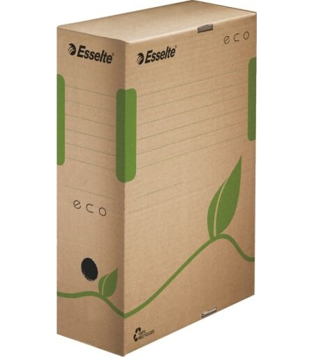 Esselte Eco Arkivæske til opbevaring og arkiveringMed Eco serien fra Esselte får du en omkostningseffektiv løsning til arkivering af dokumenter. Denne arkivæske er fremstillet af 100% genanvendt og FSC®-certificeret bølgepap, og er perfekt til at arkivere dokumenter og papirer taget ud fra brev- og ringordnere.Arkivæsken har en stabil konstruktion med forstærkede sider. Du kan også nemt samle æsken manuelt ved hjælp af de klare instruktioner, der er trykt på æsken. På den måde er det en enkel og hurtig proces.Ved at vælge dette produkt, støtter du ansvarligt brug af verdens skove, idet æsken er FSC®-certificeret.SpecifikationerFarve: NaturbrunMateriale: 100% genanvendt bølgepapTil A4-formatMål (BxHxD): 100 x 327 x 233 mmVægt: 0,14 kg100% recirkulerbarFSC®-certificeret bølgepapProducentens varenummer: 623917 ...