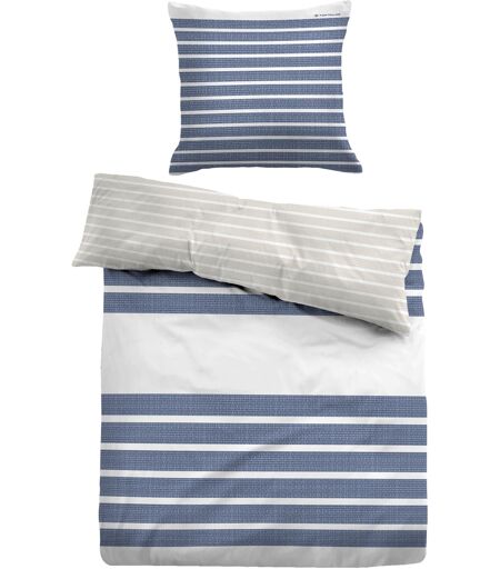 Tom Tailor Blå stribet sengetøj 150x210 cm - Blødt bomuldssatin - Blå og hvidt sengesæt - Vendbart design -