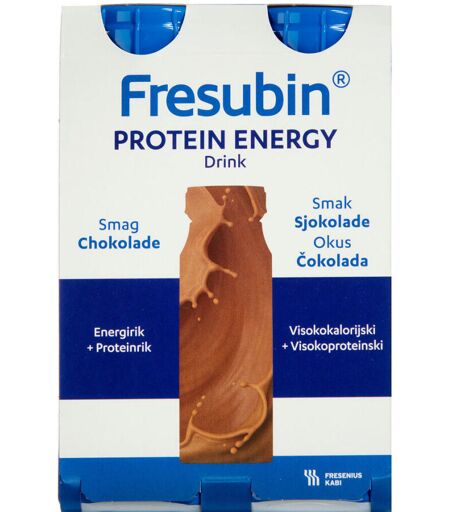 Fresubin Protein Energy Chokolade Drink er en energirig (1,5 kcal/ml) og proteinrig ernæringsdrik. Til ernæringsbehandling af patienter i risiko for underernæring. Specielt til patienter med øget energi- og proteinbehov. Fresubin Protein Energy Chokolade Drink er glutenfri og har et lavt indhold af laktose. Dispenseringsform Ernæringsdrik. Dosis og Anvendelse Som supplement anbefales 2-3 flasker à 200 ml/dag. Drikkes langsomt. Rystes før brug. Tilstrækkeligt væskeindtag skal sikres. ...